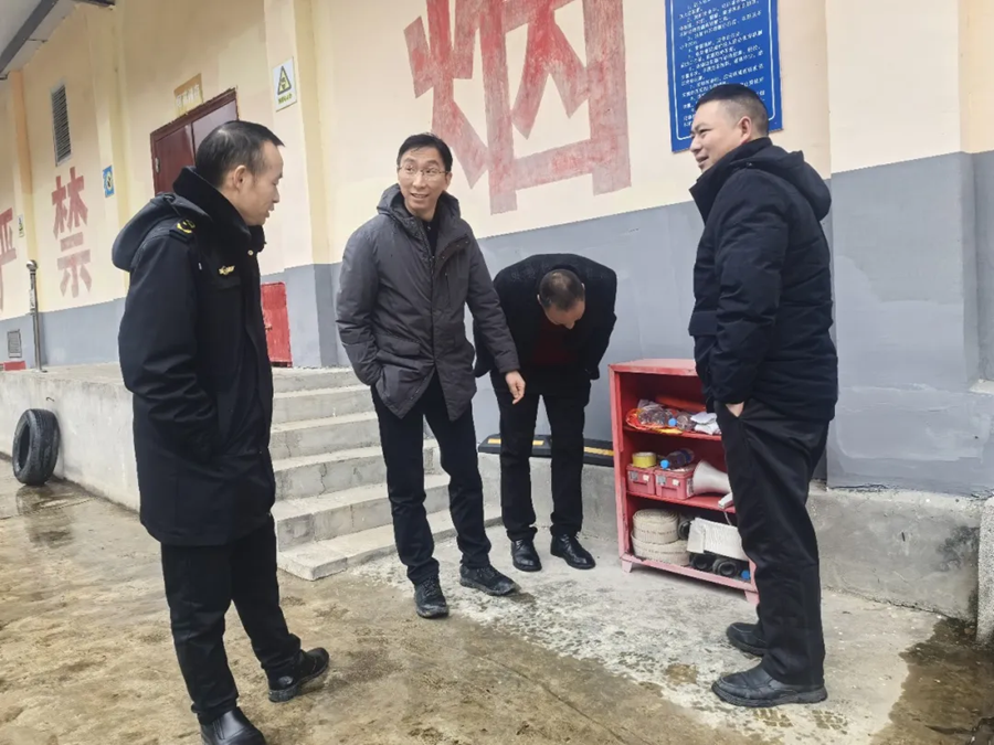 2025年12月31日,庙坝镇党委书记张炜(左二)带队到辖区重点企业排查安全隐患、细化工作要求,压实安全生产责任,筑牢节日安全防线。