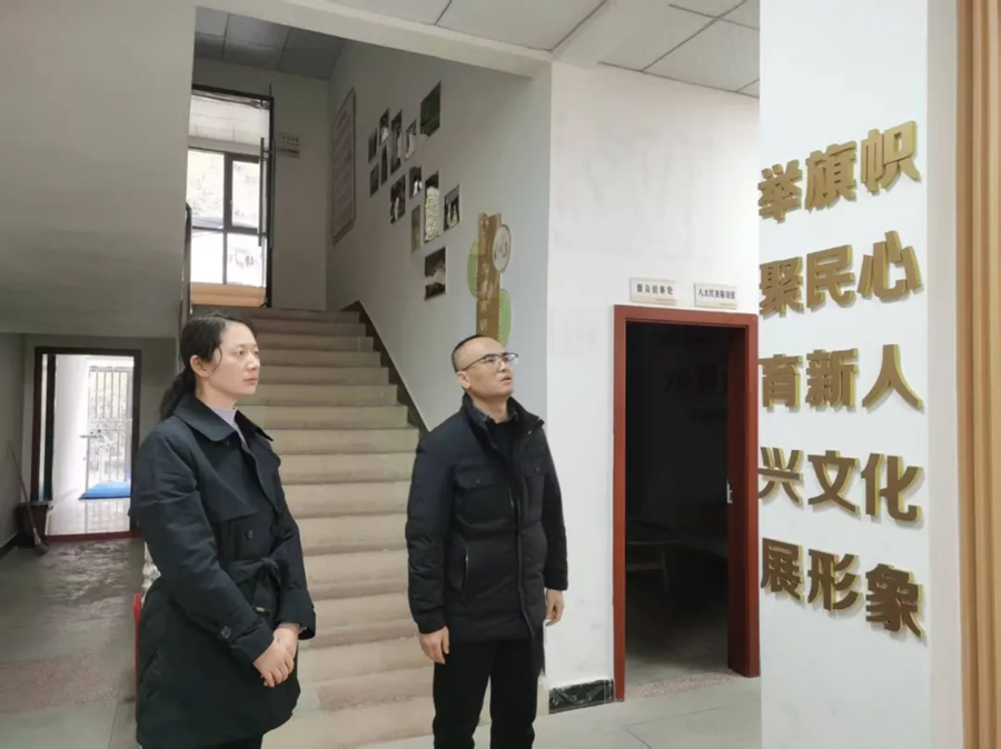 2025年12月30日,周溪乡党委书记侯凯龄(右)深入新时代文明实践所,实地察看功能布局,详细了解日常运行、活动开展与群众参与情况,提出要创新服务模式、丰富活动内涵。