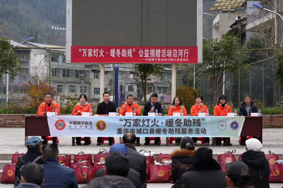 2025年12月29日,沿河乡党委书记谭天平(前排中)参加“万家灯火 暖冬助残”公益捐赠活动并致辞,为辖区残障家庭发放棉服、保暖鞋、米面等暖冬物资,以实际行动传递社会温情,筑牢民生保障底线。