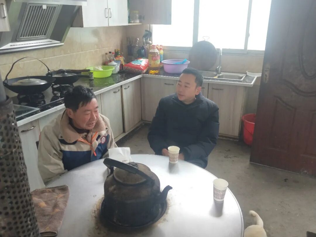 1月30日,坪坝镇党委书记代信清(右)走访辖区监测户,了解其节前生产生活及保障情况。