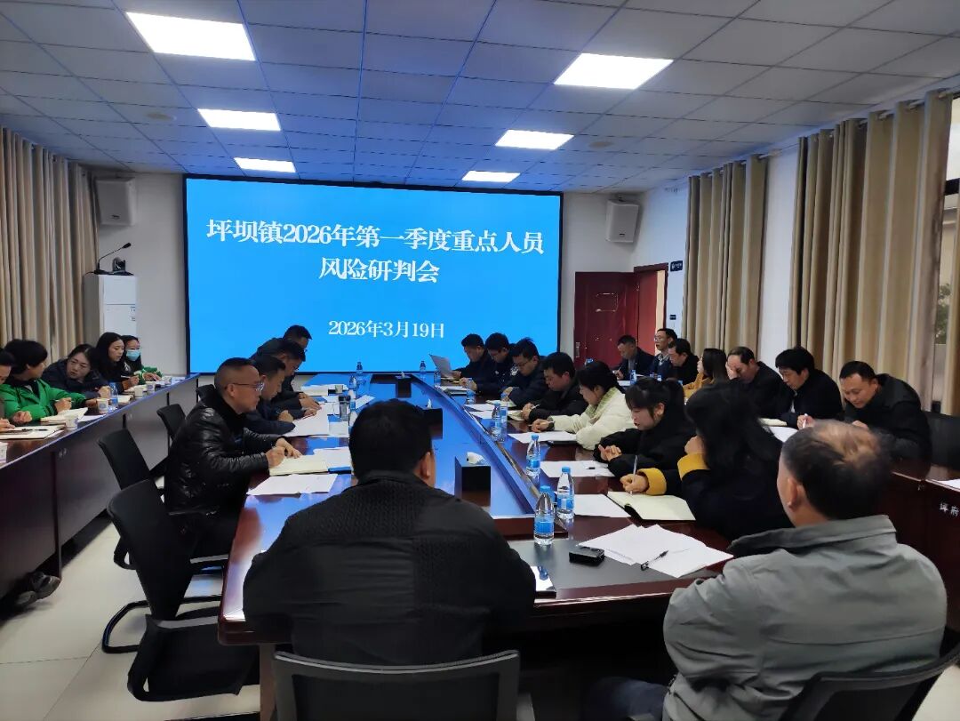 3月19日,坪坝镇党委书记代信清(左二)主持召开2026年第一季度重点人员风险研判会,研判风险隐患、明确分级管控措施,凝聚多方合力,压实各方责任,筑牢辖区安全稳定防线。