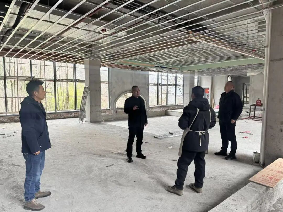 3月18日,明通镇党委书记林璨(中)带队前往龙泉村,实地察看徐植林庄园项目建设现场,详细了解项目施工进度、规划设计等情况,并就项目推进过程中存在的问题提出指导意见。