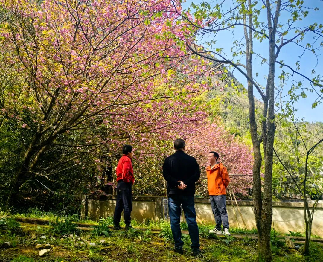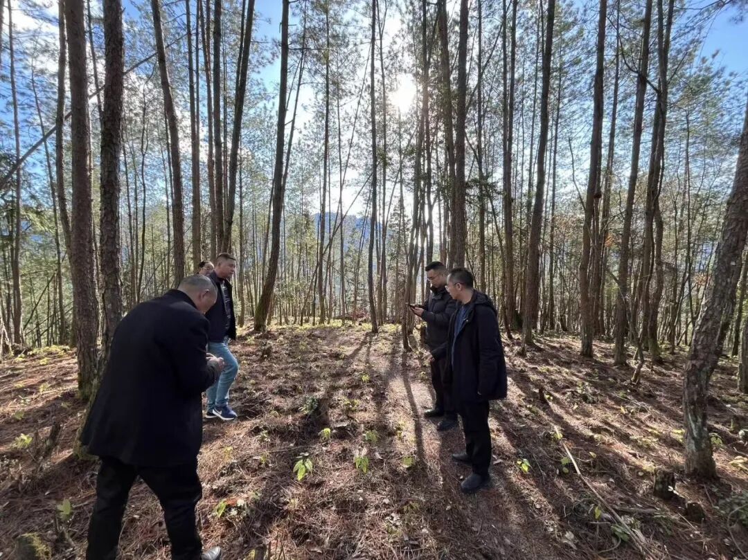 3月30日,沿河乡党委书记谭天平(左三)与中药材培育公司负责人深入文丰村,实地察看铁皮石斛种植基地建设情况,专题研究项目推进相关工作,精准破解项目推进过程中的难点堵点问题,推动铁皮石斛种植项目落地见效、助农增收。