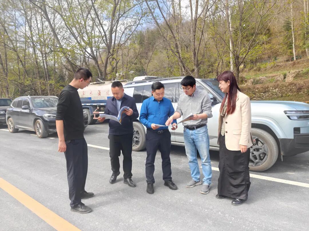 4月1日,河鱼乡党委书记代忠相(中)带领规划团队到岚天洞口至河鱼路段现场踏勘道路景观提升项目设计,就关键节点路段的创意构思、生态融合、文化植入等进行深度沟通。