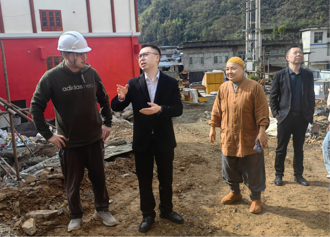 4月3日,鸡鸣乡党委书记贺鹏(左二)带队巡查鸡鸣寺在建工地,实地查看工程进度、安全保障、质量管控、环保措施等情况,认真听取项目建设过程中的实际需求与意见建议,压实安全生产主体责任,守护项目建设“平安线”。