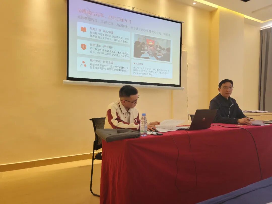 4月23日,庙坝镇党委书记张炜(右)围绕基层武装工作,结合乡镇实际,为专武干部开展授课。