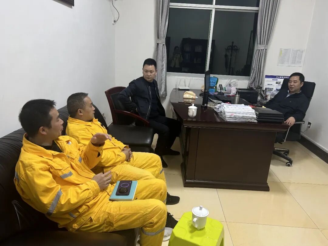 4月22日,巴山镇党委书记杨永国(右)同巴山水电公司会商研究汛期安全工作,在隐患排查、防汛监测、科学调度、应急处置等方面加强协同配合,共同筑牢汛期安全防线。