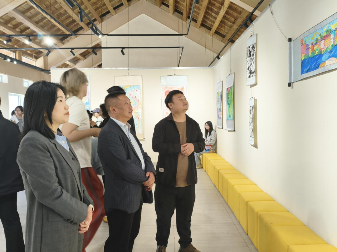 4月23日,咸宜镇党委书记万正君(中),参加吉利学院“山野视觉计划——2025级学生写生展览”,现场了解咸宜艺术文旅产业发展,指导写生配套设施建设、精品旅游线路打造等工作。