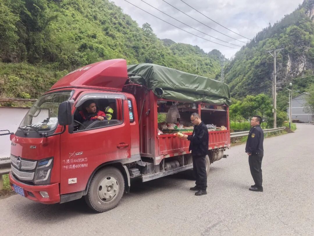 4月22日,周溪乡党委书记侯凯龄(中)带队深入一线开展路检路查,重点对道路上行驶的流动售货车进行安全检查,仔细查看车厢内贩卖的食品,详细询问货源渠道与保质期。提出要加大巡查力度,严把食品安全关,坚决杜绝不合格食品流入市场,切实保障群众安全。