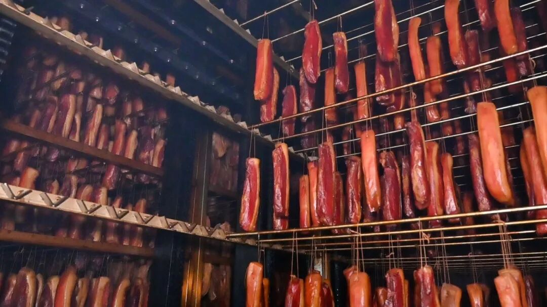 一片腊肉,能香飘多远?修齐镇赵孝春野生食品开发有限公司的腊肉车间内,烟气袅袅,香味扑鼻。该公司制作的城口老腊肉,选用高山生态猪,遵循千年非遗古法,是全国腊肉类中唯一的“中华老字号”。近年来,城口县实施城口老腊肉“再出发”工程,构建起标准化生产、品质管控、品牌营销等五大体系。如今,城口老腊肉年产量突破1.2万吨,全产业链产值达30亿元,带动1.8万余农户户均增收1.2万元以上,成功入选全国名特优新农产品名录,入驻全国近480家盒马鲜生门店。