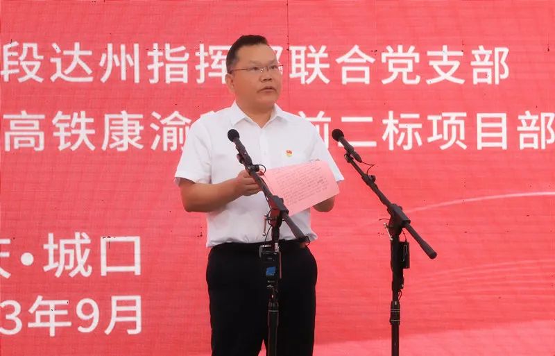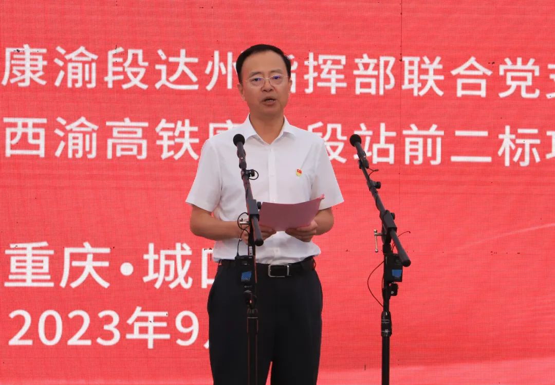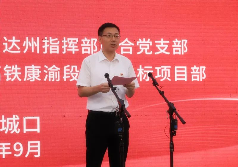 9月12日,西渝高铁康渝段举行“大干一百天·勇当火车头”劳动竞赛启动仪式暨主题党日活动。这是重庆市交通局党委委员、副局长李建明致辞。记者 李燕林 摄