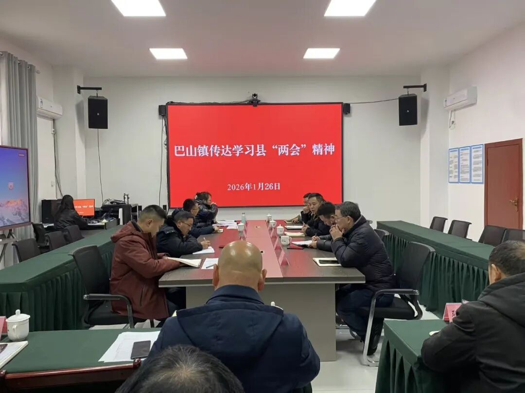 1月26日,巴山镇党委书记杨永国(右排中)主持召开专题会议,传达学习县“两会”精神。结合巴山镇发展实际,就贯彻落实会议精神、扎实推进重点工作作出部署安排。