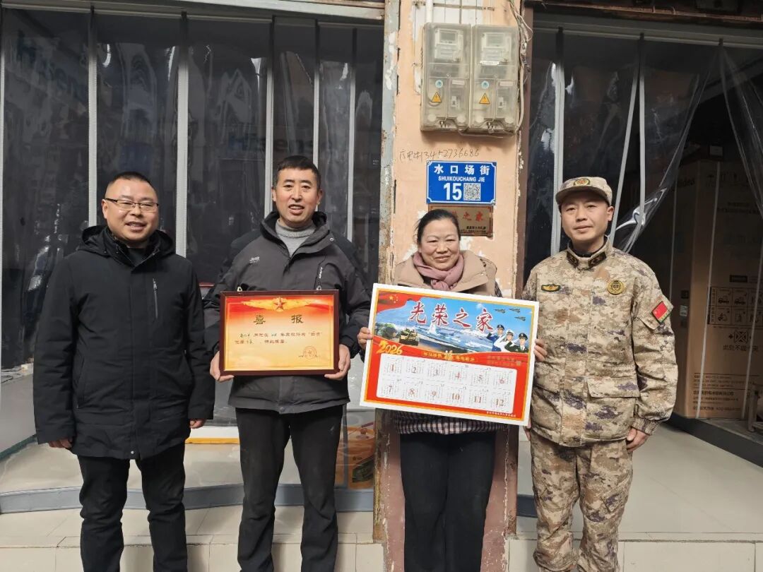 1月28日,东安镇党委书记贺书逊(左一)带着党和政府的关怀和敬意为现役军人家属送上立功喜报,让“一人立功,全家光荣”的荣誉感深入人心,在全镇持续营造营拥军优属、尊崇军人的浓厚氛围。