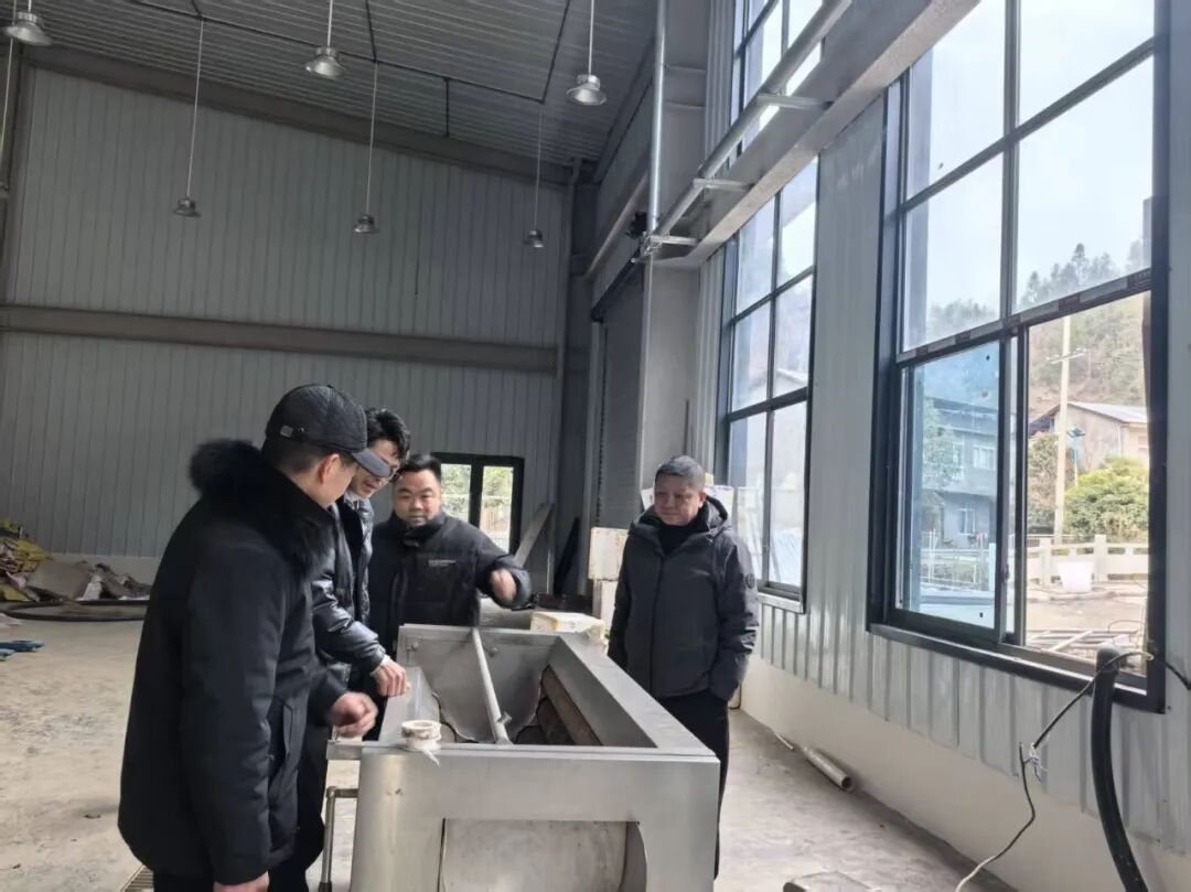 1月26日,治平乡党委书记李长建(右一)深入辖区天麻加工厂,实地查看天麻生产、加工全流程情况。