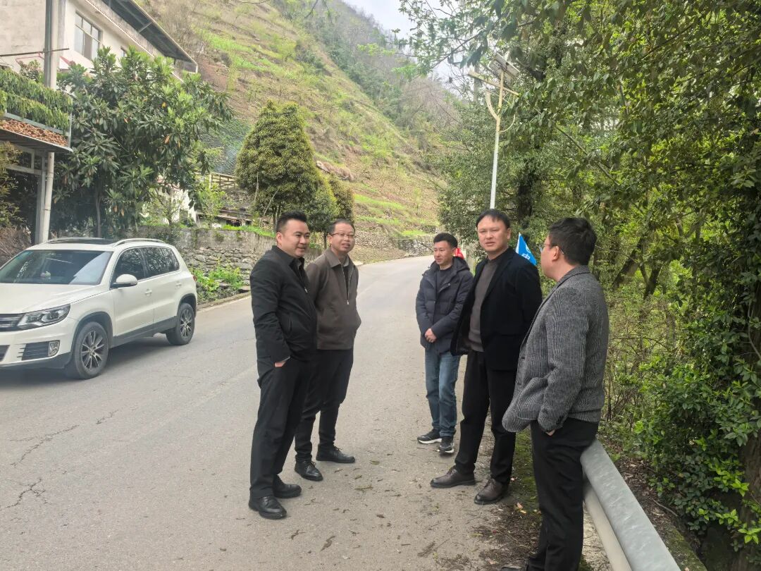 4月1日,河鱼乡党委书记代忠相(中)带领规划团队到岚天洞口至河鱼路段现场踏勘道路景观提升项目设计,就关键节点路段的创意构思、生态融合、文化植入等进行深度沟通。