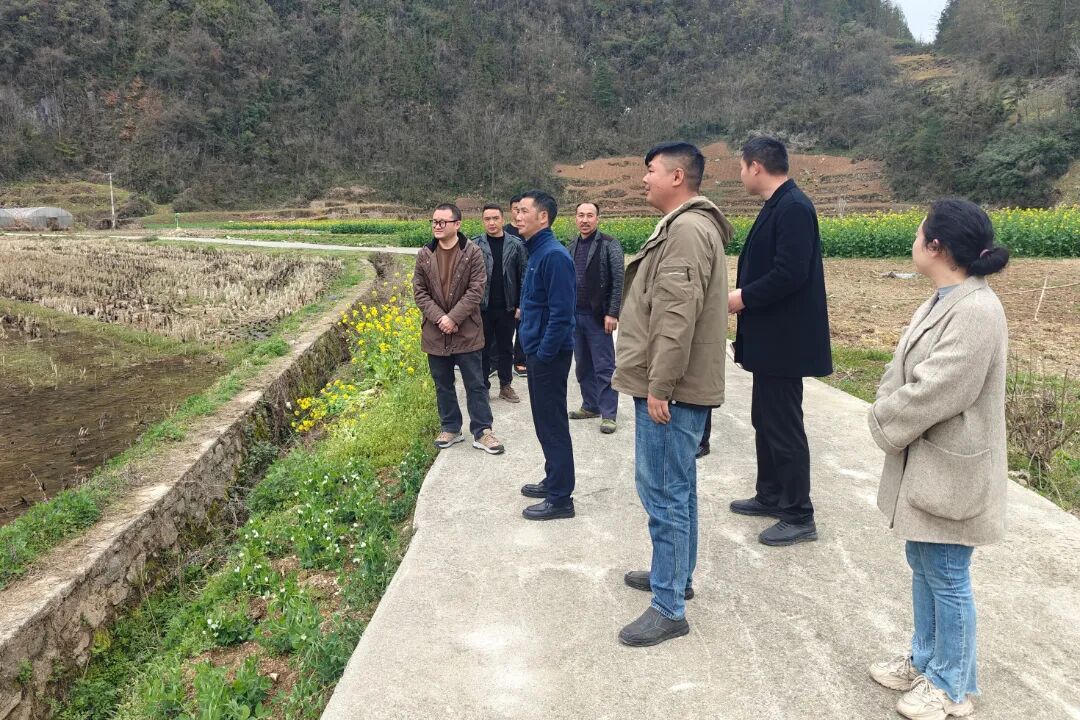 3月30日,沿河乡党委书记谭天平(左三)与中药材培育公司负责人深入文丰村,实地察看铁皮石斛种植基地建设情况,专题研究项目推进相关工作,精准破解项目推进过程中的难点堵点问题,推动铁皮石斛种植项目落地见效、助农增收。