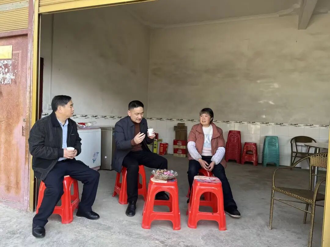 4月2日,明中乡党委书记简文波(中)带队至各村社遍访监测户,详细了解其家庭收支、政策落实、生活保障等情况,倾听群众诉求,现场协调解决急难愁盼问题,压紧压实帮扶责任,牢牢守牢防返贫底线。