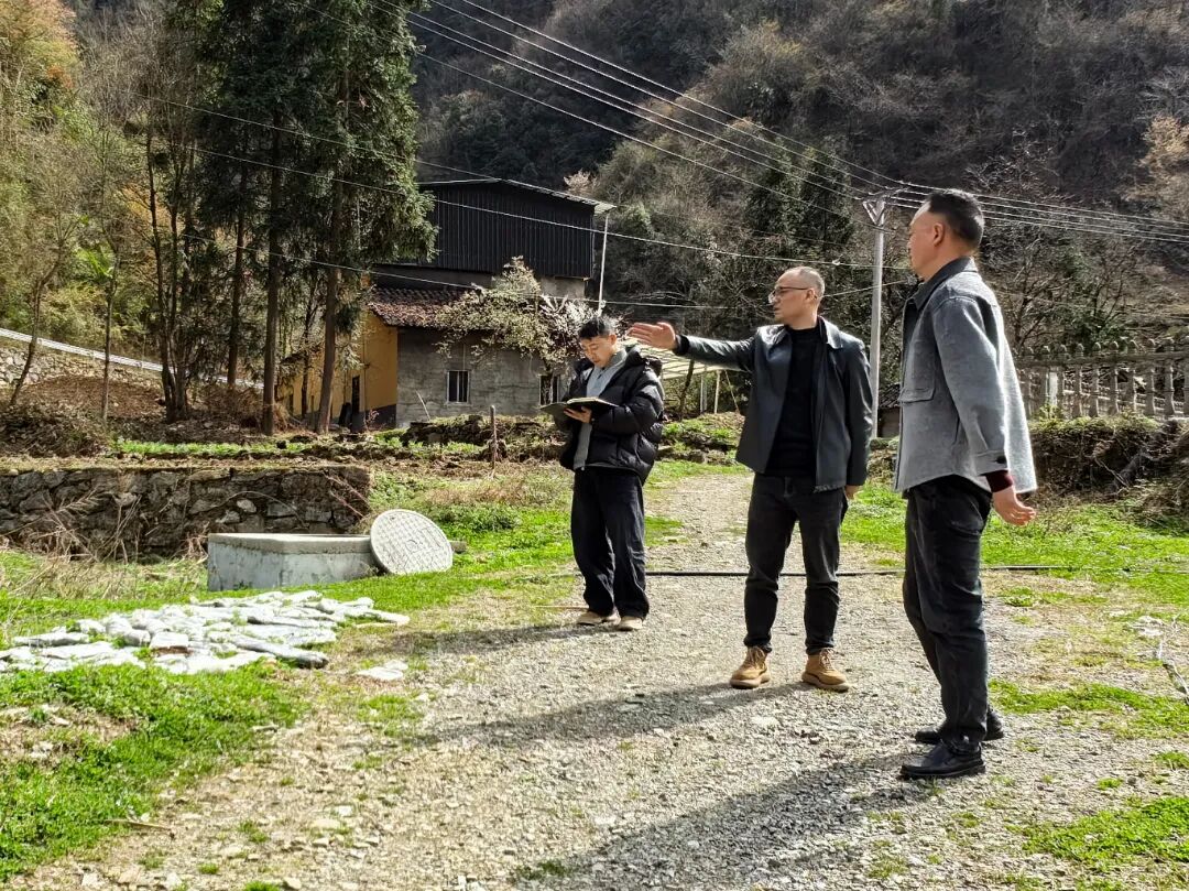 3月31日,高燕镇党委书记周远志(中)到红军村、长田村调研并规划农文旅融合发展工作。