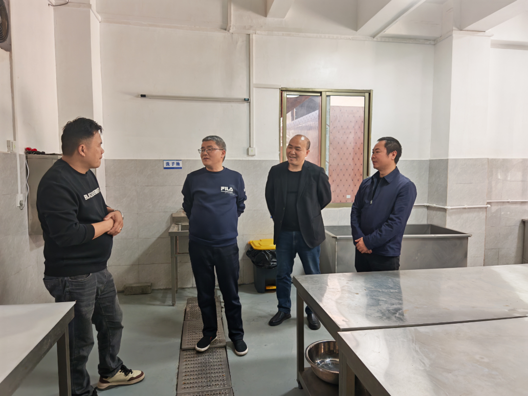 4月1日,左岚乡党委书记陆是朝(右二)陪同市发改委帮扶集团驻咸宜镇工作队一行,到大坝村老腊肉炕房开展产销情况调研。通过实地查看、座谈交流,详细了解生产工艺、市场销售及发展难题。