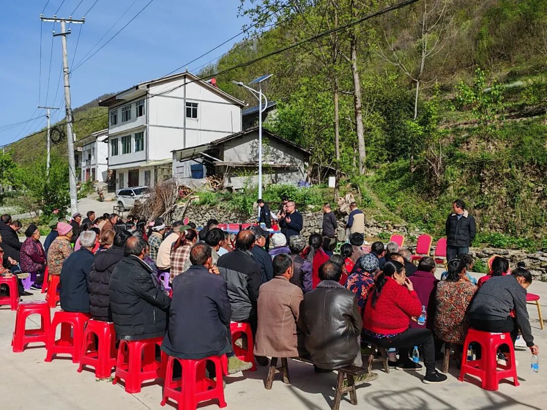 4月23日,东安镇党委书记贺书逊(前排中)到朝阳村参加院坝会,重点了解大家在春耕生产、产业分红、基础设施维护等方面的实际困难和诉求,耐心解答群众疑问,并就全镇产业发展规划、惠农补贴政策等进行详细讲解。